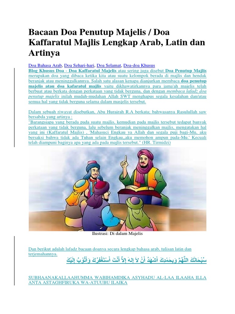 Penjelasan lengkap seputar doa penutup majelis. Majelis merupakan bahasa arab yang jika di artikan ke bahasa indonesia maknanya adalah tempat duduk. Mulai dari keutamaan adab bahasa arab latin artinya hadist shohih dan sesuai sunnah rasulullah saw.