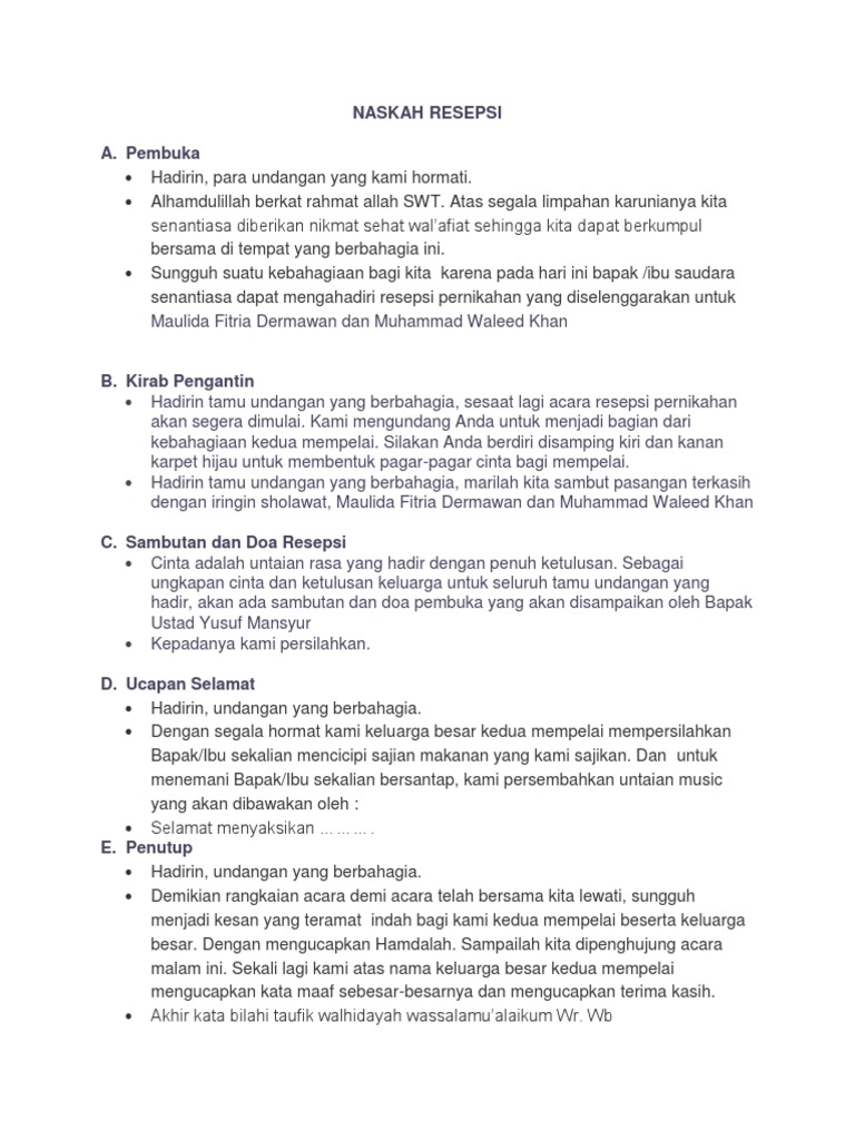 Contoh Ucapan Tasyakuran Pernikahan Nasi Box Docx Mohon