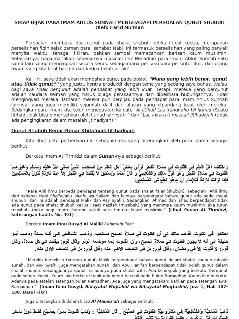 Qunut Subuh Antara Imam Dan Makmum 1