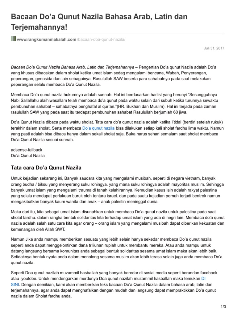 Pdf Bacaan Do A Qunut Nazila Bahasa Arab Latin Dan