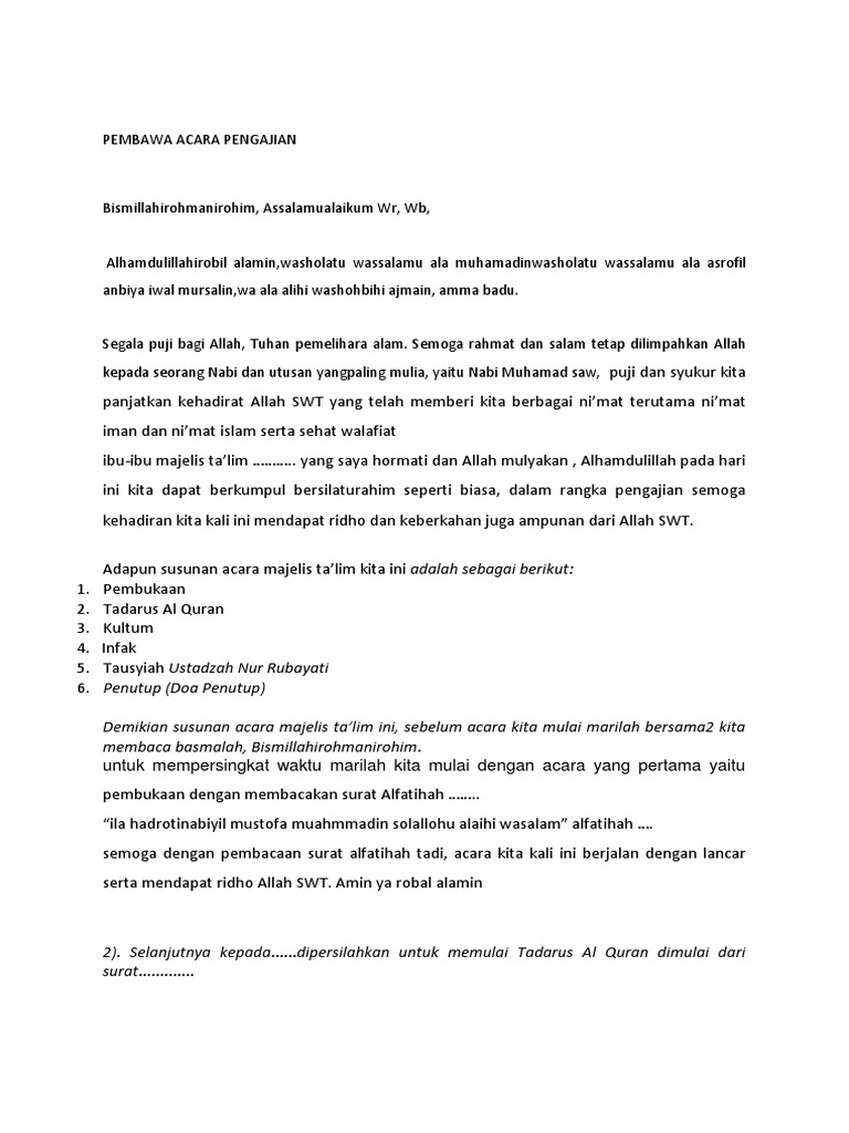 Pembacaan ayat suci al quran. Teks bacaan doa pembuka acara majelis dan terjemahannya pada sebuah majelis atau pengajian umat islam baik majelis dzikirwirid ataupun majelis taklimilmu tentunya terdapat urutan dan susunan jalannya acara mulai dari awal hingga akhir.